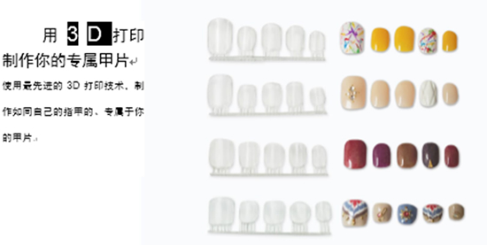由于以往的甲片或者美甲店的甲片大小形狀不合適,許多忙碌的職業(yè)女性不得不放棄美甲。針對這種情況,東芝運用3D掃描和3D打印技術(shù),構建了網(wǎng)上美甲服務(wù)平臺,顧客只需到店一次,之后就可以在網(wǎng)絡(luò )上輕松選用適合自己的甲片。不僅如此,“open nail”還開(kāi)發(fā)出一個(gè)創(chuàng )意征集平臺,非專(zhuān)業(yè)美甲師的普通大眾同樣可以上傳自己的創(chuàng )意作品。